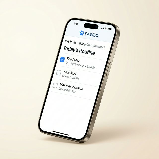 The curated sanctuary for your pet's schedule. Pawlo coordinates feeding, walks, and meds so your best friend never gets double-dosed.